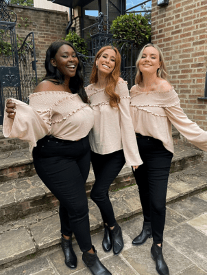 The loose women panelist shared two photos of herself and joe in their garden ahead of their night out, with stacey wearing a pretty purple floral print dress from her new collection with in.